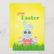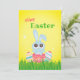 Cartoon illustration of a cute Easter Bunny on the grass with the colour easter eggs. Please customise all the available options as you wish.