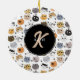 Colourful Cute Funny Cats & Paw Pattern Monogram Ceramic Ornament