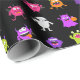 Colourful Cute Halloween Monsters on Black Wrapping Paper