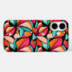 Retro-style floral pattern with bold colour flowers in pinks, oranges and turquoise is a fun pattern for any phone.