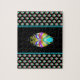 Colourful Cyan and Black Oracle Owl Jigsaw Puzzle
