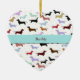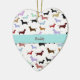Put your family's pet dog on the Christmas tree this year and for years to come, with this adorable heart shaped Christmas tree ornament. The front has a white background with lots of little weenie dogs on it. A graphic of an aqua ribbon runs through the centre awaiting your text. The back has space for your dog's photograph. Personalise with your own beloved pet's photo and name for a wonderful ornament the entire family will love and cherish.