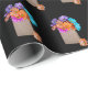 Colourful daisy bouquet in a generic brown paper bag on black background.