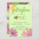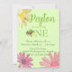 A whimsical design for baby's first birthday features colourful daisies in pink, purple, green and yellow. The front of the card features script typography that you can personalise. The back of the card is a kaleidoscope of colour with an all over daisy pattern. Matching party essentials are available in my store. A colourful and cute way to mark your little girl's first birthday.