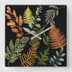 Colourful Dark Fern Botanical Foliage Floral Square Wall Clock