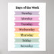 Perfect for early childhood education, this poster helps children learn and remember the days of the week in an enjoyable way. The clear, easy-to-read font and cheerful colours enhance visual learning and make this poster a valuable addition to any educational setting.