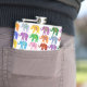Multi-coloured rows of decorative elephants with background colour you can customise.