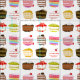 A colourful fabric of multi-coloured cake slices illustrations in cute graphic mouth watering style. This illustration by Freepik is cute, trendy art. The background colour is fully customisable.