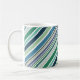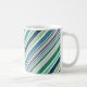 Diagonal geometrical pattern illustration with beige, green, grey, purple, blue, navy blue and turquoise stripes decoration on white background