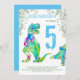 Colourful dinosaur birthday party invitation to celebrate the child who loves dinosaurs turning 4 with this Roaring T-Rex and cute stegosaurus inviting Dino fans to a 4th birthday party. Personalise this fun psychedelic multicolored Tyrannosaurus and stegosaurus invitation by adding the name of the birthday boy or girl, the number of the birthday and the party details and you are all set for a fun packed dinosaur blue Jurassic jungle themed dino birthday. All dinosaur species are welcome. Prehistoric jurassic era Dinosaur illustrations, original artwork by artist by Catherine Sweetman