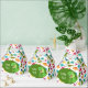 Does your little boy or girl love dinosaurs? This custom birthday party favour box is perfect! There's a big dinosaur T-Rex, a green background, and a fun colourful dino pattern.