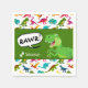 Does your little boy or girl love dinosaurs? This custom birthday party paper napkin is perfect! There's a big T-Rex saying RAWR, dinosaur footprints and your little kid's name on white, a green background, and a fun colourful dino pattern.