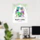Welcome you guests with this fun colourful psychedelic dinosaur themed wedding welcome poster sign with funny dinosaur bride and groom and watercolor eucalyptus greenery. If you and your partner love dinosaurs this is the perfect way to bring some roarsome dino love to your special day. Unique T-Rex watercolor illustrations in blue pink purple yellow orange and green hues. Easy to use templates with modern whimsical typography script. Original artwork by artist Catherine Sweetman