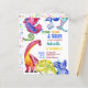 Whimsical colourful dinosaurs kids birthday party budget invitation template.