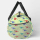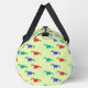 Colourful dinosaurs pattern on green duffle bag