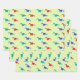 Colourful dinosaurs pattern on green wrapping paper sheet