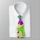 This necktie has a novelty design of dinosaurs scattered across the design.