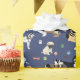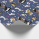 A colourful optimistic dog pattern with bernese mountain dogs, German shepherd dogs, pug puppies, huskies, rough collies and beagles. The space between dogs is filled with colourful bones and paws.