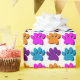 Cute cartoon style dog paw print pattern with 3D effect applied to the image. Paws in pink, blue, purple and orange.