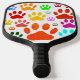 Colourful Dog Paw Prints All Over Pickleball Paddle