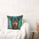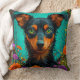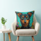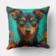 Vibrant decorative throw pillow featuring a stylised dog portrait against a teal floral background. Perfect for home decor, accent seating, pet lovers, and colourful interiors seeking playful modern art details.