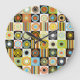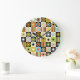 Colourful dots, circles, stripes background. large clock
