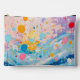A fun and lively acrylic painted design bursting with a rainbow of hues, featuring dots, drips, splatters and splashes.