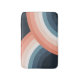 Abstract illustration of retro style rainbow design in pink, pastel pink, grey, turquoise, blue, dark blue colours on navy blue background