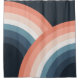 Abstract illustration of retro style rainbow design in pink, pastel pink, grey, turquoise, blue, dark blue colours on navy blue background