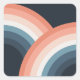 Abstract illustration of retro style rainbow design in pink, pastel pink, grey, turquoise, blue, dark blue colours on navy blue background