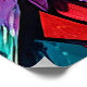 Vibrant and colourful eagle artwork. The eagle's head is depicted in a striking style with layers of bold, geometric shapes and bright colours, including reds, blues, greens, and yellows. The feathers are stylised with intricate detailing, showcasing a variety of shades that create a sense of depth and movement. The background consists of similarly colourful geometric patterns that enhance the overall dynamic composition. The eagle's piercing eye adds an intense focal point to the piece, conveying strength and majesty.