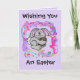 Here's our adoreable bunny with his chocolate egg surrounded by lots of colourful swirls that look like frosting and candy beads. The card can be customised to say whatever you wish if you don't like what we've put on it.