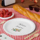 Colourful Easter eggs paper plates, with an eggs and botanical greenery design on a white background. With elegant black script typography lettering, you can add your own message. A simple way to celebrate with loved ones this Easter.