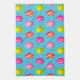 Colourful Easter Eggs On Polka Dot Background Tea Towel
