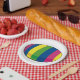 A colourful egg with a range of colours. This design looks really effective on these Paper Plates