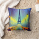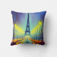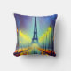 Colourful accent throw pillow, with graphics of the Eiffel Tower in Paris at night. Great gift idea for anyone.
