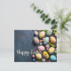 This holiday postcard features several colourful Easter eggs and some beautiful fresh flowers. This cute postcard would make a wonderful greeting for friends, family and co-workers.
