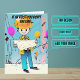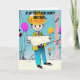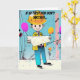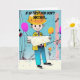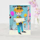 This lovely card is specifically for the male engineer friend or family member in your life. The design is in graphic art, cyberpunk, pop art style, of an engineer reading blueprints at a birthday party on a job site.