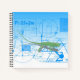 A fun and colourful square spiral notebook that has an illustration of a green lizard standing on a paper filled with mathematical equations and geometric designs. Beautiful blue background.