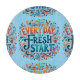 This vibrant and uplifting design features the inspiring phrase "Every Day is a Fresh Start" in bold, artistic typography surrounded by flowing, whimsical patterns. The rich colour palette blends warm sunset hues with deep blues and teals, creating an energising yet harmonious aesthetic. With a retro vintage lettering style and boho artistic flair, this design evokes a sense of renewal and positivity, making it a perfect choice for those who appreciate daily motivation with a creative touch. The swirling decorative elements add movement and charm, reminiscent of folk art and expressive hand-drawn illustrations. Ideal for anyone who loves inspiring messages paired with intricate, lively patterns, this piece radiates encouragement and artistic beauty. AI generated artwork.