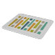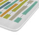 This fabulous mid-century modern cutting board features geometric exclamation points in the colours of turquoise blue, orange, tan, avocado green, blue, and black. Add that bit of funky to your cooking!