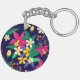 Colourful Exotic Flowers Leaves Pattern-23021 Key Ring