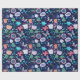 Colourful exotic flowers with a sparkling texture in a seamless pattern over dark blue background.