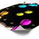 A grouping of colourful eye glasses on a cool black background. A modern digital design great for adding a pop of colour and expression to your walls.