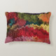 This colourful fine art accent pillow features an image of a contemporary abstract fabric pattern in wavy psychedelic rainbow colours of pink, red, yellow, orange, green, blue, brown, mauve, purple and turquoise which resembles a painter's palette.