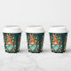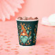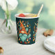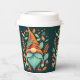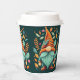 A Paper Cup Design Of Colourful Gnomes For Fall Parties With Falling Leaves In Orange and Teal