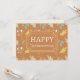 Thanksgiving greeting card with words "Happy Thanksgiving" on a background of colourful fall leaves. Add your own message to the back.