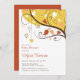 Adorable whimsical illustrations of orange and brown mummy bird and baby bird perched on a heart filled tree with dangling heartstrings. Very cute and fun perfect for outdoor baby showers.