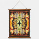The polyester fabric displayed many wrinkles and several sharp creases throughout. At the bottom of the tapestry, I noticed a bulge in the fabric because it was not pulled tight enough before being connected to the wooden boards. It took me over an hour to spay water on the tapestry before putting it on an ironing board where I used a warm iron over a polyester cloth to remove the wrinkles and creases in the material. I was able to get out the wrinkles and creases that made that tapestry look as beautiful as its picture.