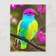 Colourful Fantasy Bird On a Branch With Flowers Postcard